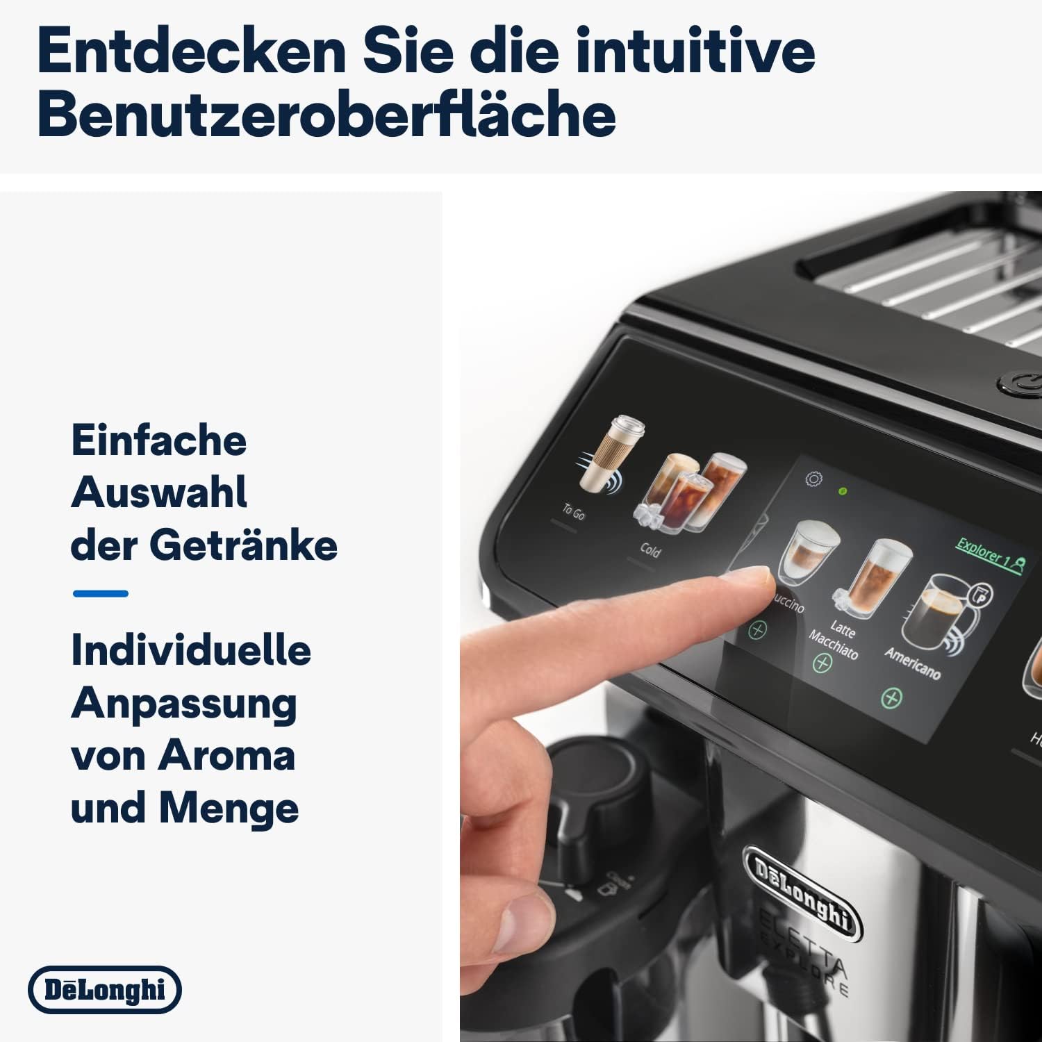 De'Longhi Eletta Explore Cold Brew ECAM452.67.G Kaffeevollautomat mit LatteCrema Milchsystem, Heiße & Kalte Getränke auf Knopfdruck, 3,5 Zoll TFT Touchscreen Farbdisplay, inkl. Kaffeekanne, Dunkelgrau
