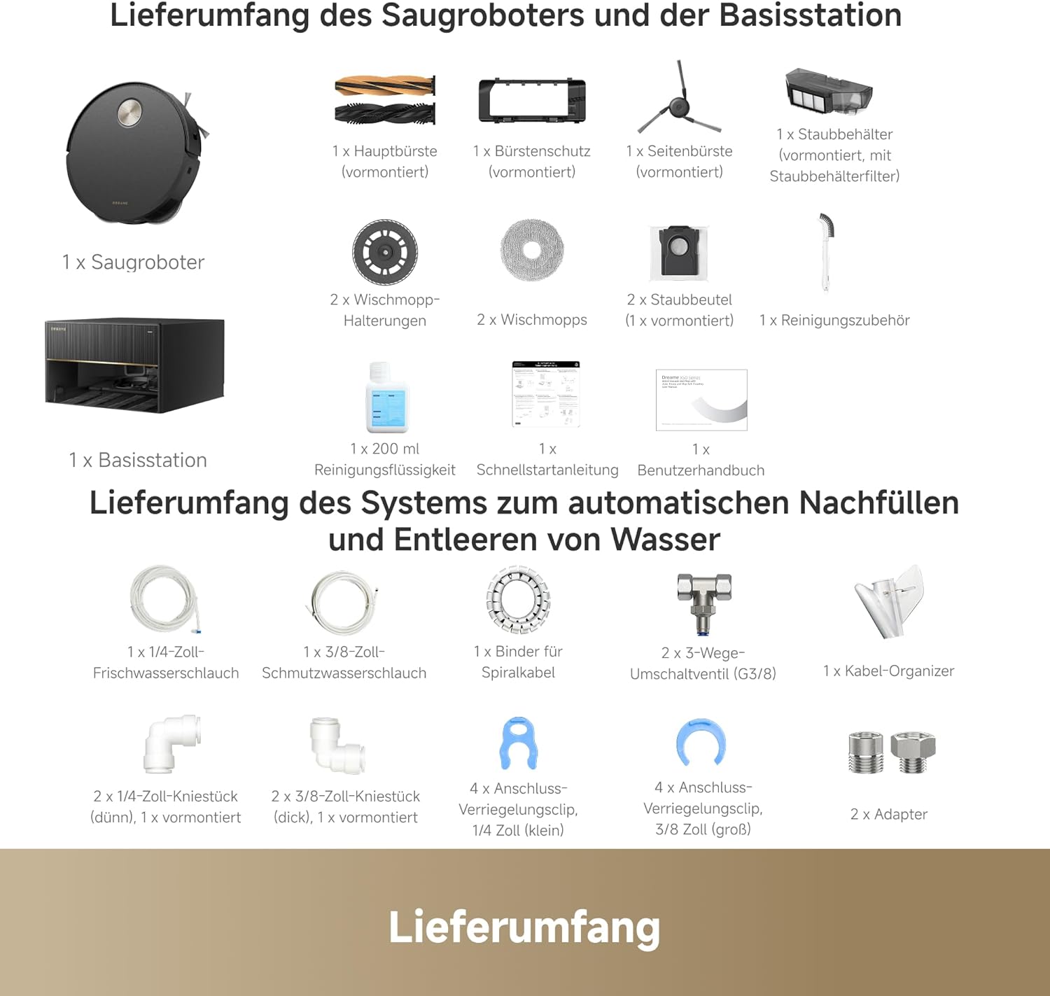 - 【Elegantes und kompaktes Design】Mit seinem ultrakompakten 24,9-cm-Design fügt sich der X50 Master gut in moderne Räumlichkeiten ein und überzeugt mit Funktionen zum automatischen Nachfüllen und Entleeren sowie zur Wischmopp-Reinigung mit heißem Wasser. Das All-in-1-Powerdock mit UV-Leuchten sorgt dafür, dass Ihr Zuhause noch hygienischer wird – dank Reinigung ohne manuellen Aufwand und zuverlässiger Beseitigung von Bakterien