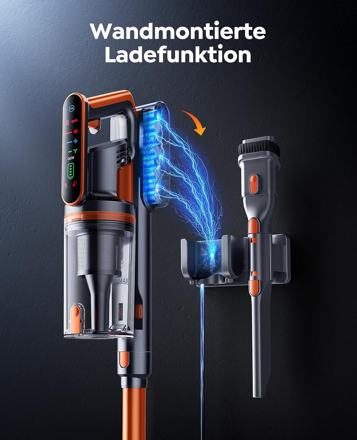 - đă60 Minuten lange Akkulaufzeit & SchnellladungăDer Staubsauger verfĂŒgt ĂŒber einen leistungsstarken, abnehmbaren 8x2500mAh-Akku, der die Reinigungszeit um 35 % verlĂ€ngert. Reinigen Sie Ihre gesamte WohnflĂ€che in einem Ladezyklus! Die wandmontierte Ladestation lĂ€dt den Akku in nur 4-5 Stunden vollstĂ€ndig auf. Optional können Sie einen zweiten Akku separat erwerben, um die Laufzeit zu verdoppeln!