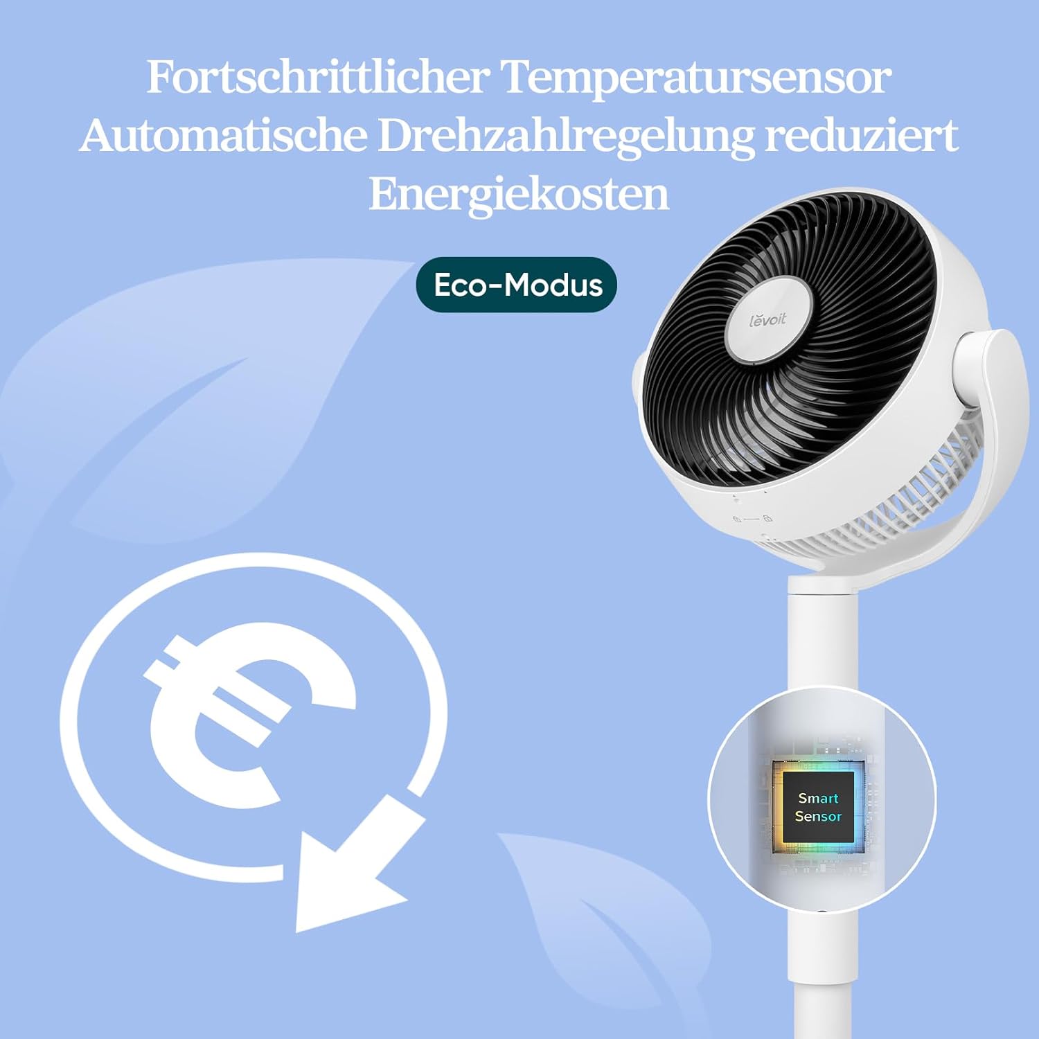 - 𝗜𝗻𝘁𝗲𝗹𝗹𝗶𝗴𝗲𝗻𝘁𝗲𝗿 𝗘𝗰𝗼-𝗠𝗼𝗱𝘂𝘀: Maximal 30W pro Tag; Dank des Sensors kann der Ventilator im Eco-Modus die Geschwindigkeit automatisch an die Raumtemperatur anpassen, was sehr praktisch und energieeffizient ist; Es gibt auch 12 Stufen zur manuellen Einstellung