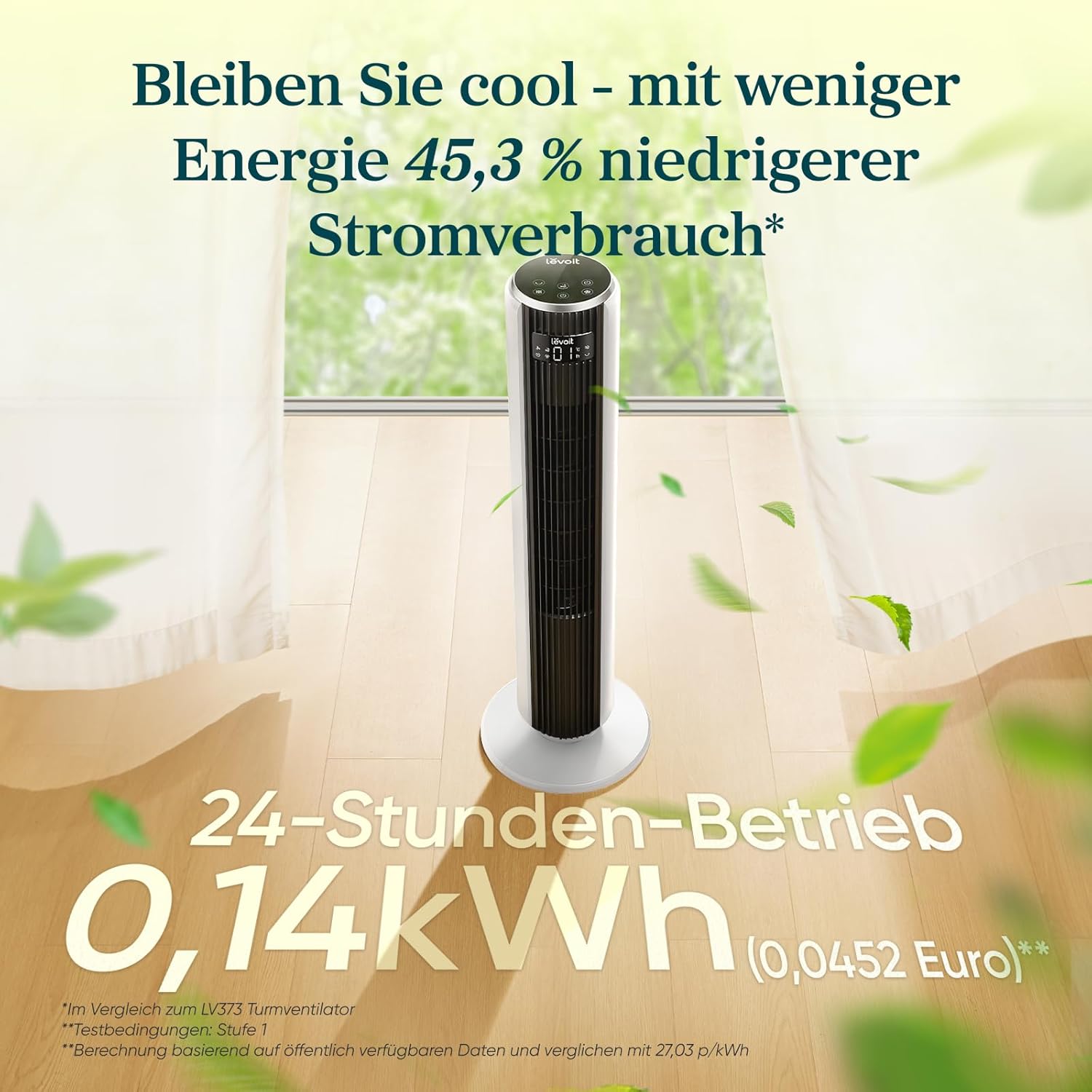 - 𝐄𝐧𝐞𝐫𝐠𝐢𝐞𝐞𝐟𝐟𝐢𝐳𝐢𝐞𝐧𝐭𝐞𝐫𝐞𝐫 𝐃𝐂-𝐌𝐨𝐭𝐨𝐫: Dieser Turmventilator verwendet einen Gleichstrommotor mit einer Leistung von nur 24 W; Bei ganztägiger Nutzung kostet dies nur 0,06 €, sodass Sie sich keine Gedanken über die Kosten machen müssen