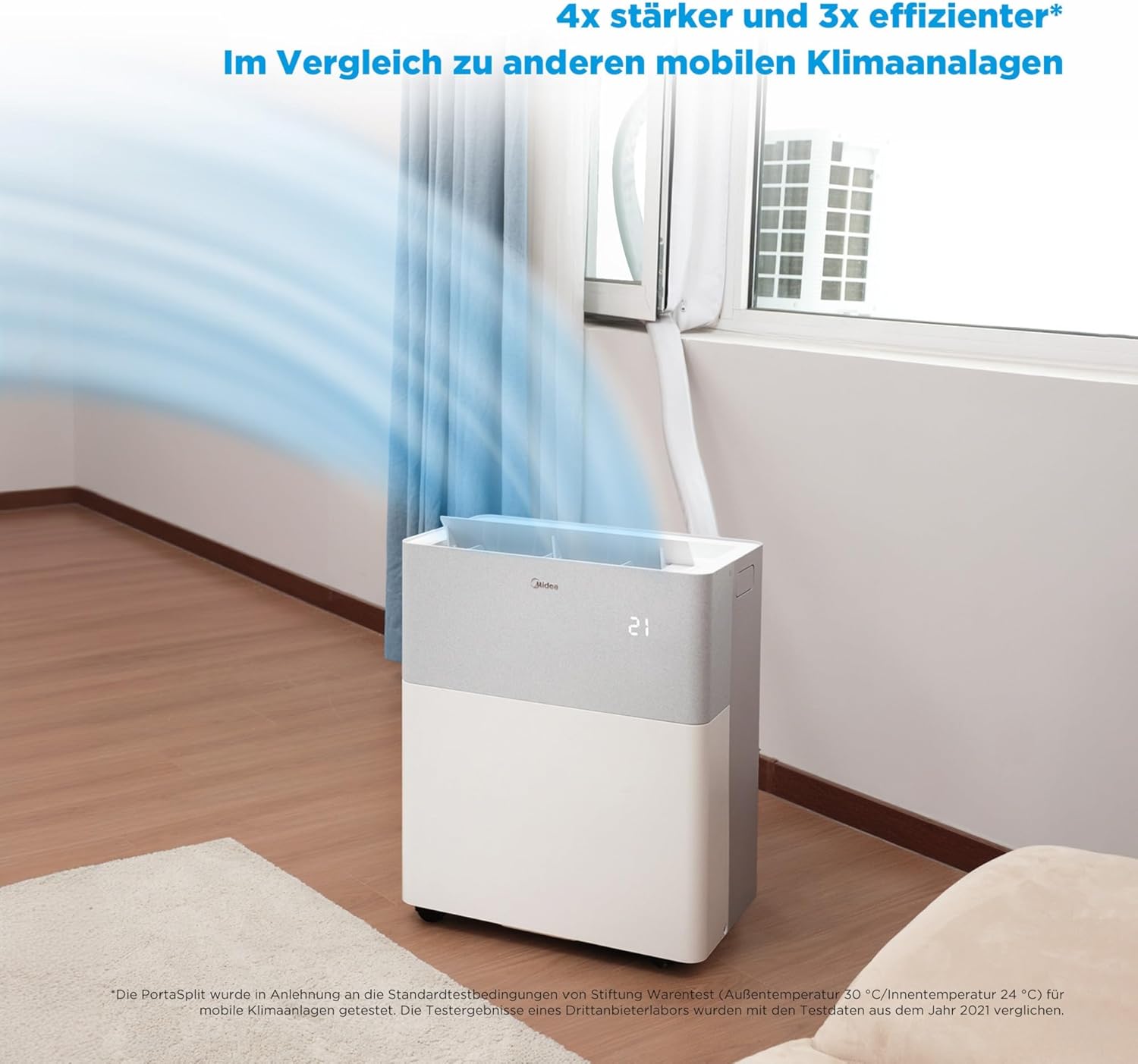 Midea Portasplit Klimaanlage, Mobile Wärmepumpe, Kühlen A++/Heizen A+, 12000 BTU 3, 5kW, für Räume bis zu 42 m² / 105 m³, nur 39 dB(A) im Silent-Modus