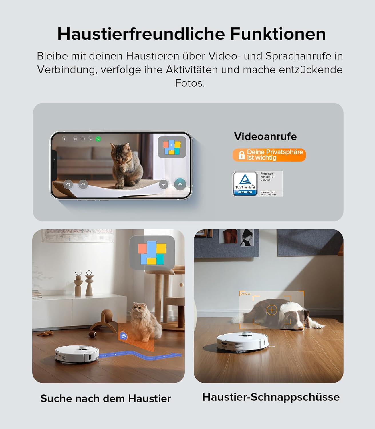 - [ Sage „Hello Rocky“ , um Hilfe zu erhalten] Sage einfach ,Hello Rocky", um Reinigungen zu beginnen, Einstellungen für verschiedene Szenarien anzupassen oder den Roboter an die benötigte Stelle zu rufen, alles ohne manuelle Eingriffe.Genieße den Komfort der Sprachsteuerung ohne WLAN oder Telefon, selbst offline.
