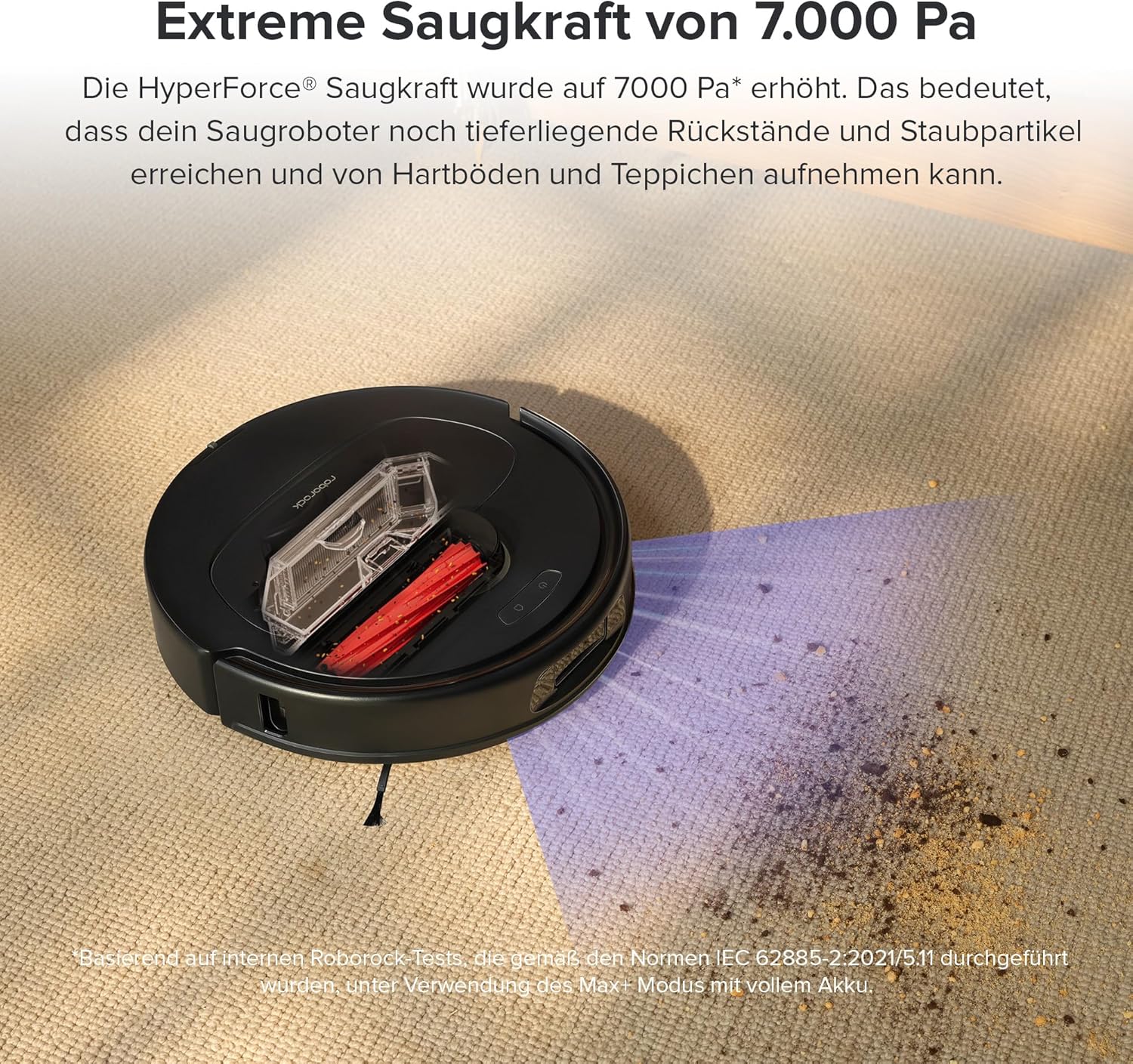 - Extreme Saugkraft von 7.000 Pa - Die HyperForce Saugkraft wurde auf 7000 Pa erhöht. Das bedeutet, dass dein Saugroboter noch tieferliegende Rückstände und Staubpartikel erreichen und von Hartböden und Teppichen aufnehmen kann.
