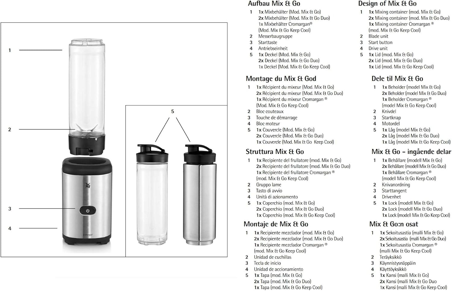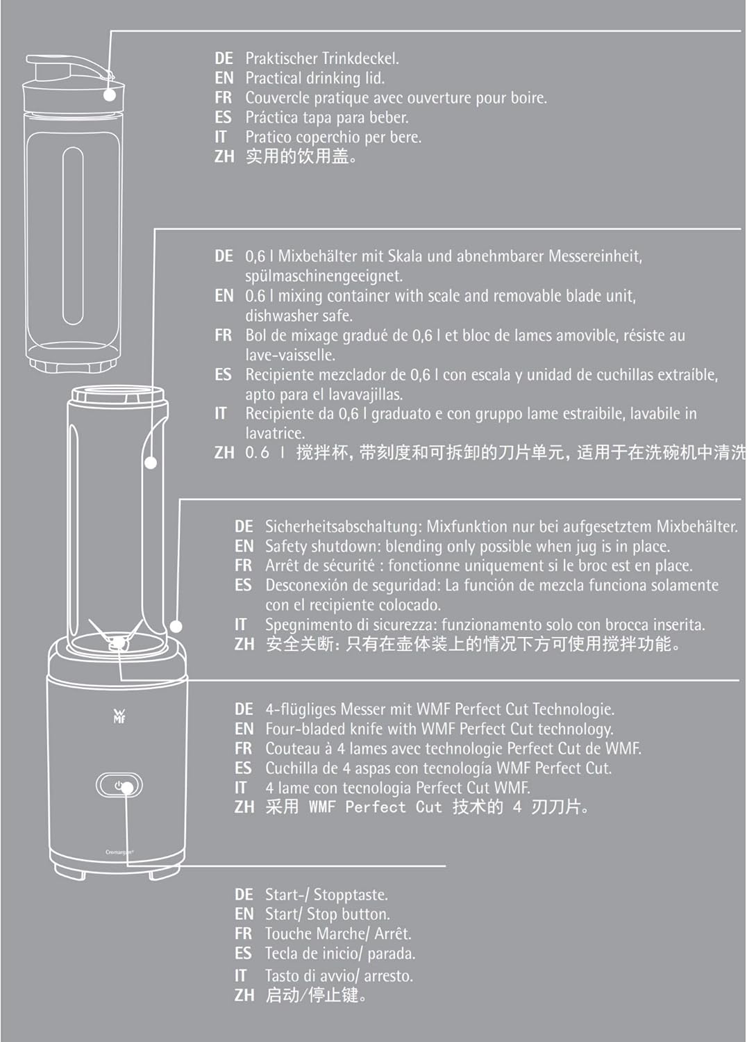 - Der dichte Mixbehälter mit praktischem To-Go-Trinkdeckel hat eine Skala und ist aus BPA-freien TRITAN-Kunststoff. Alle abnehmbaren Teile sind spülmaschinenfest